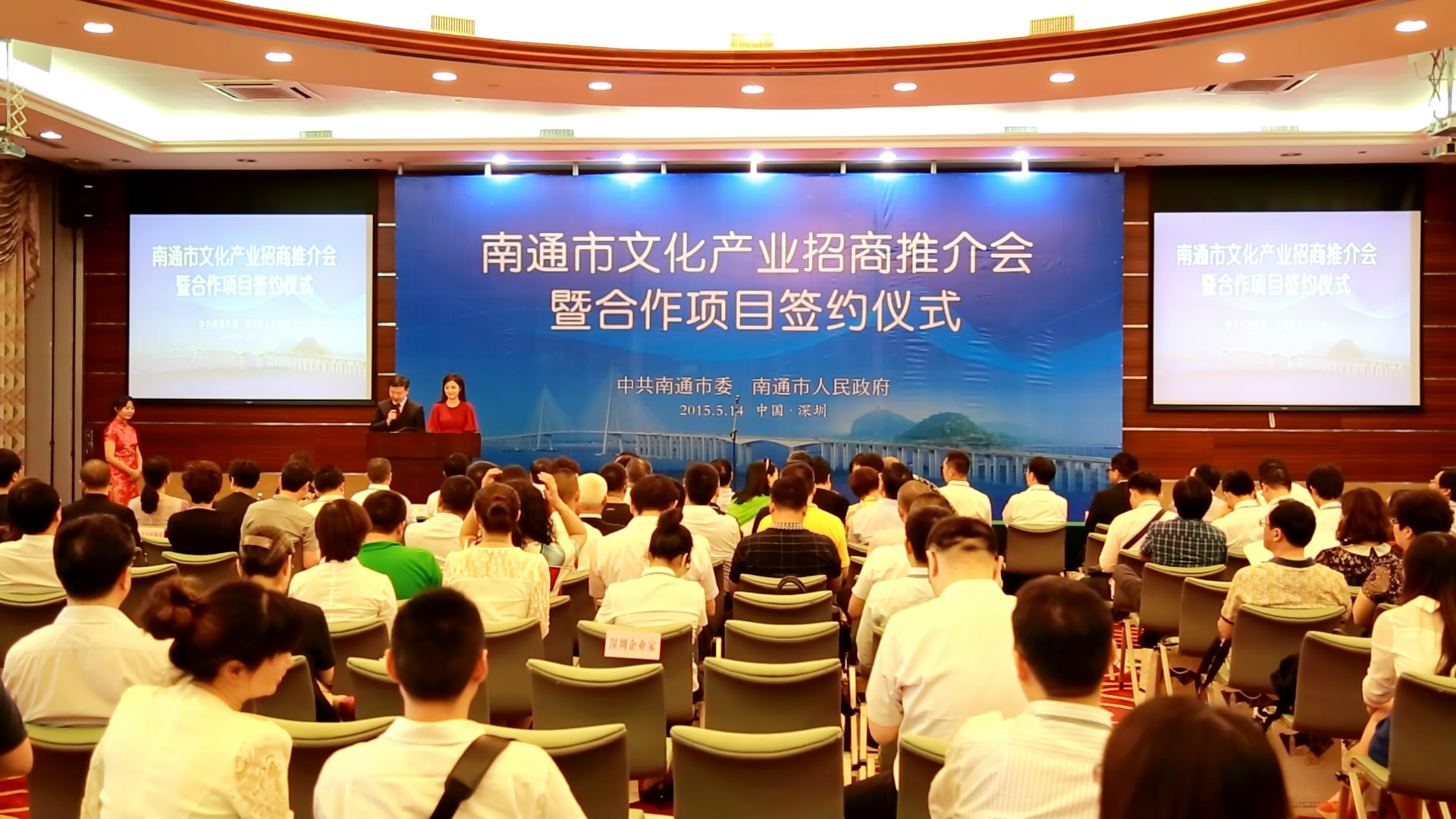 同时,在会展中心六楼茉莉厅,中共南通市委、南通市政府举办了“南通市文化产业招商推介会暨合作项目签约仪式”。