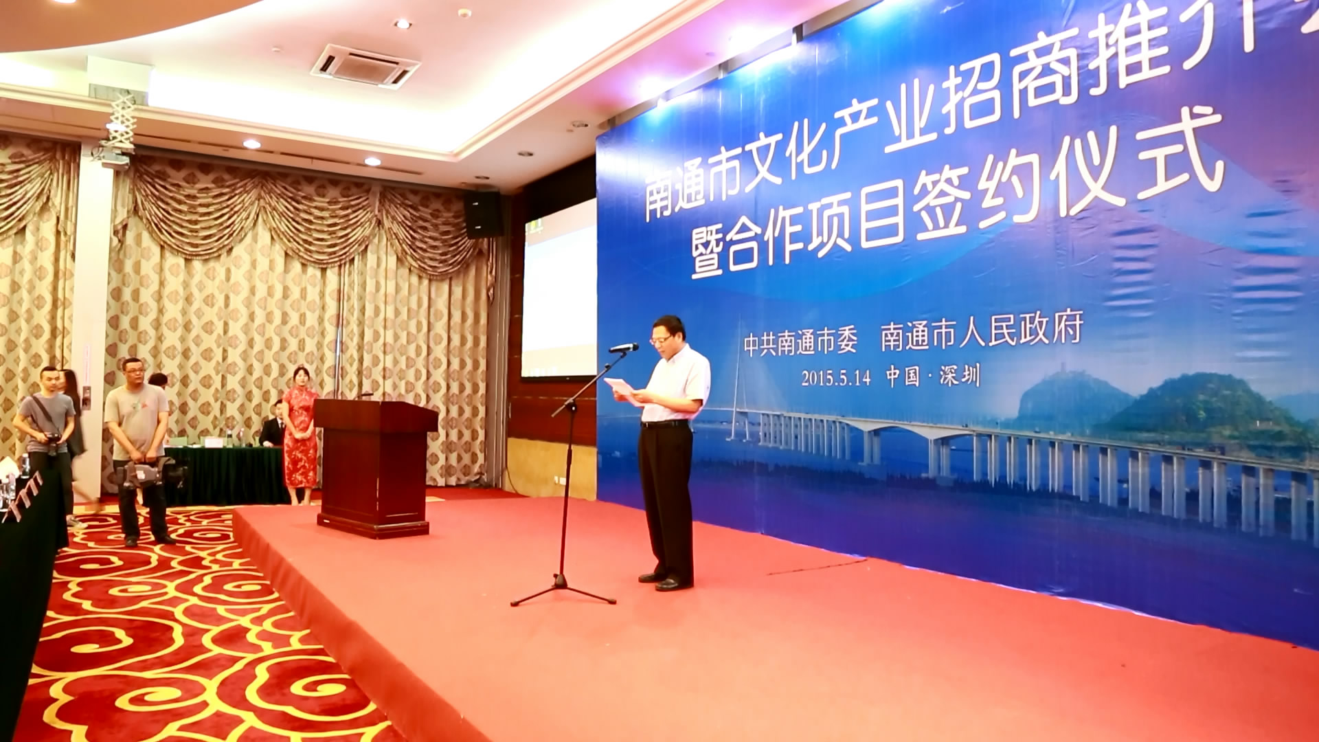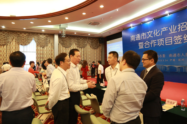 我司作为本次深圳文博会南通市招商会的第一签约企业,受到了中共南通市委的高度重视。南通市委副书记陈斌同志、市委常委章树山同志、市委办公室副主任施小镭同志、市委宣传部副部长顾华同志、南通市驻深圳办事处主任潘国华同志等数十位南通市、区委领导出席了本次签约仪式。