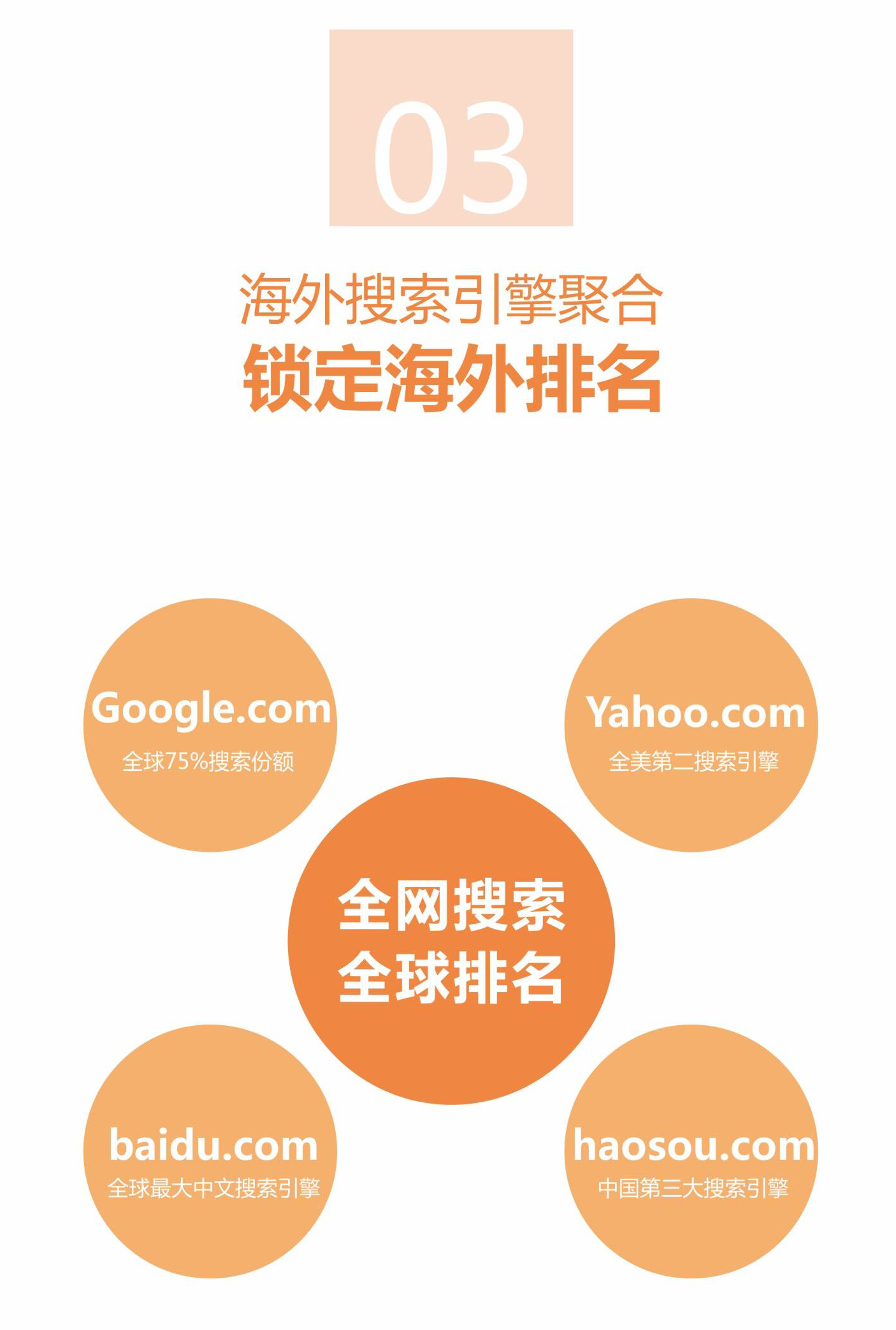 网赢战车(3.0)版本覆盖国内主流的三大搜索引擎(百度、搜狗、360),之后,网赢战车将增加全美第二搜索引擎雅虎和全球75%搜索份额的谷歌,锁定海外排名,实现全球营销。