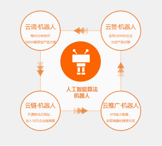 云链·机器人帮助企业在拥有36000多家企业的企业链接圈寻找可链接的企业,形成云链云盟,直接提升网站的权重。四大机器人携手为企业服务,实现全搜索引擎广告覆盖,全面助力企业霸屏!